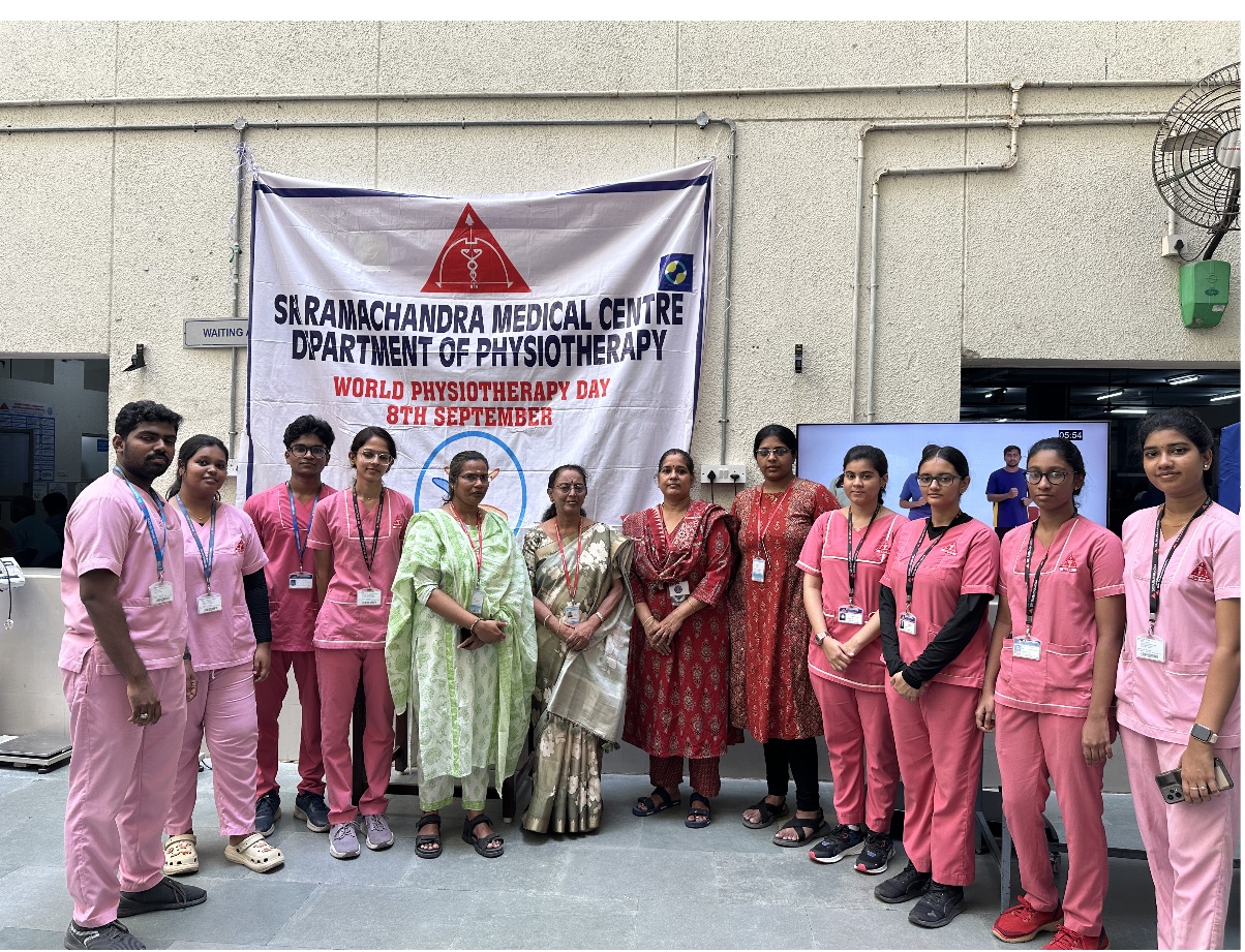 Department of Cardiopulmonary Physiotherapy, Sri Ramachandra Faculty of Physiotherapy on the occasion of World Physiotherapy Day celebrations  2025 organised " GUIDANCE FOR HEALTHY AGEING” on 3/9/2025 at  Sri Ramachandra Hospital . The aim of the camp was to educate  on healthy ageing,causes for falls and prevention of falls   among the elderly . Dr,Usha. Professor of Geriatric Medicine, SRIHER educated the elderly about the importance of physical activity, proper nutrition and medications. Posters on risk factors for falls in elderly and strategies to prevent fall prevention were displayed. Educational videos on fall prevention and exercises were played Total number of beneficiaries: 50